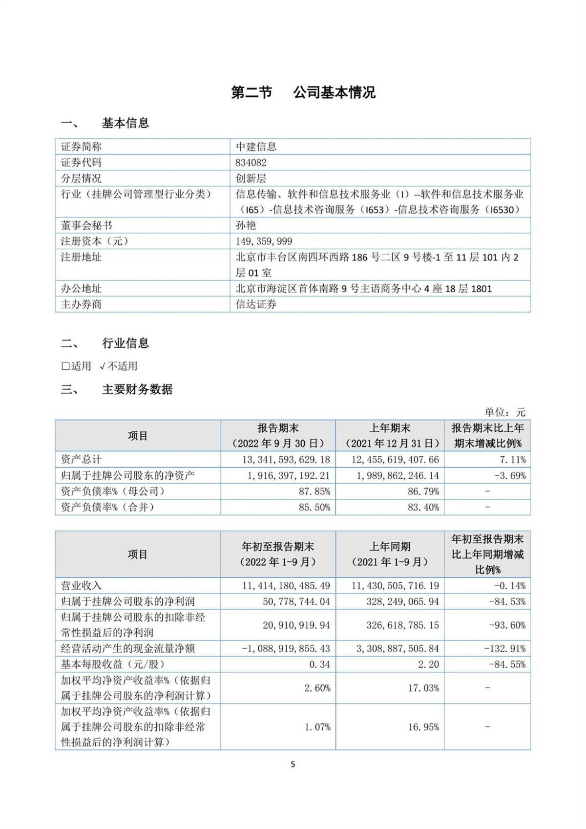 中建信息2022年第三季度报告