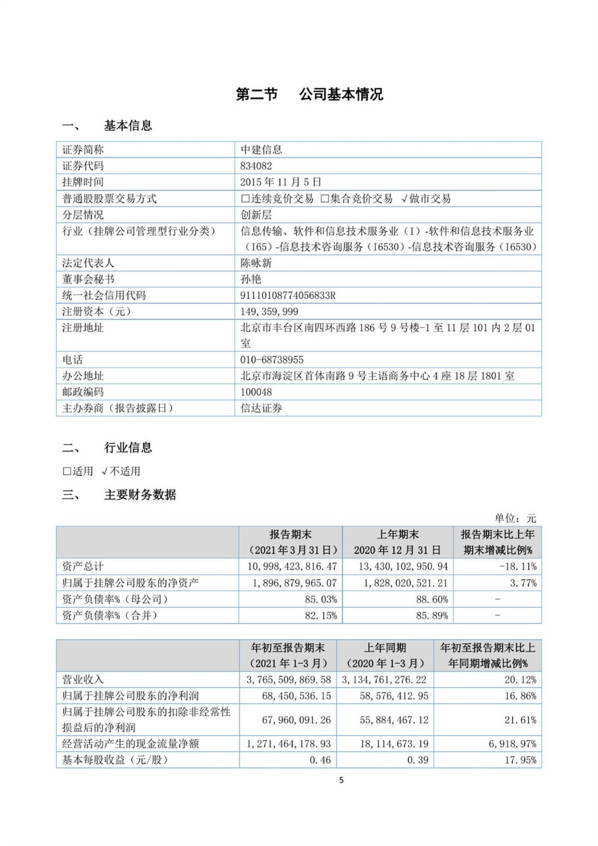 中建信息2021年第一季度报告