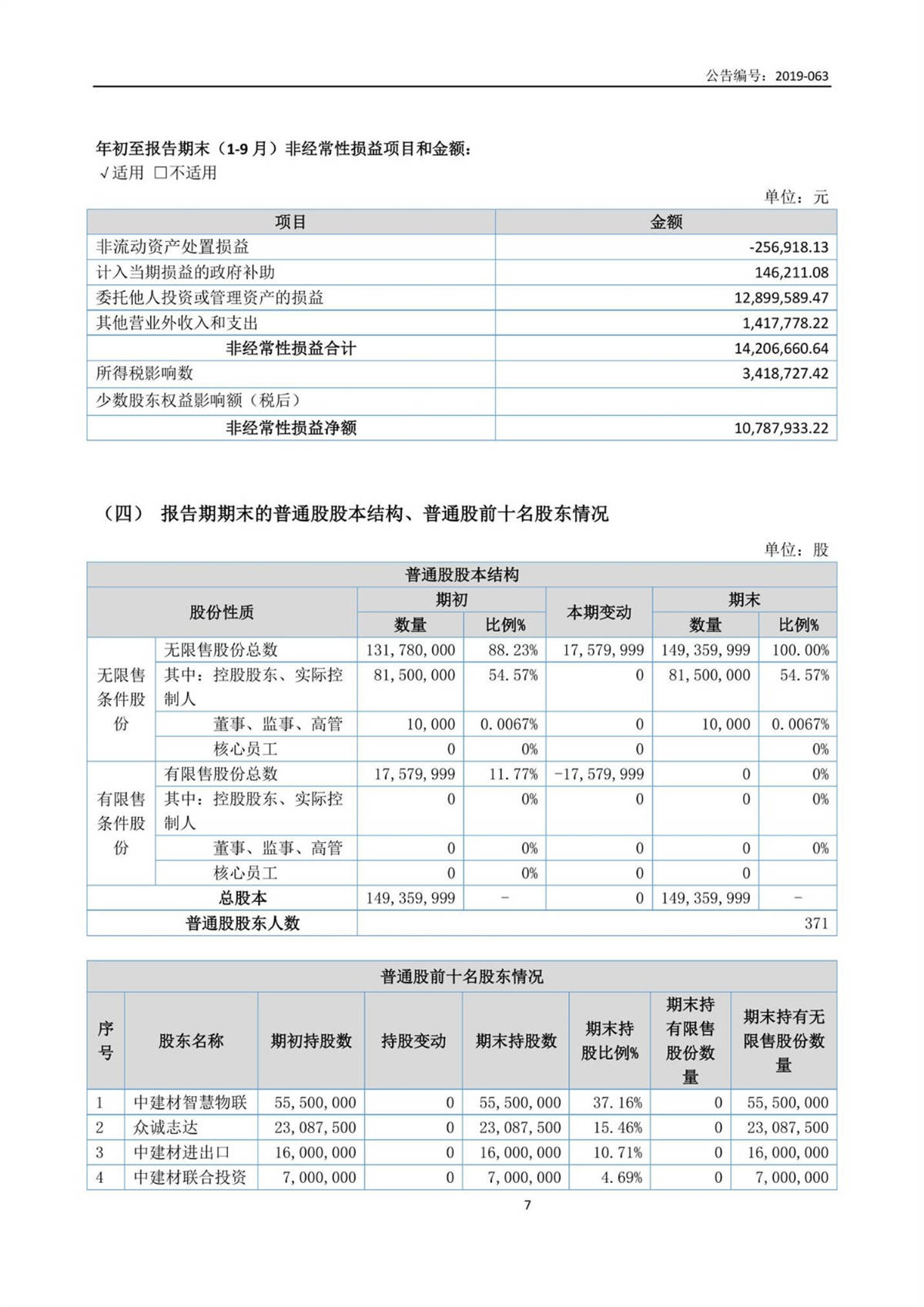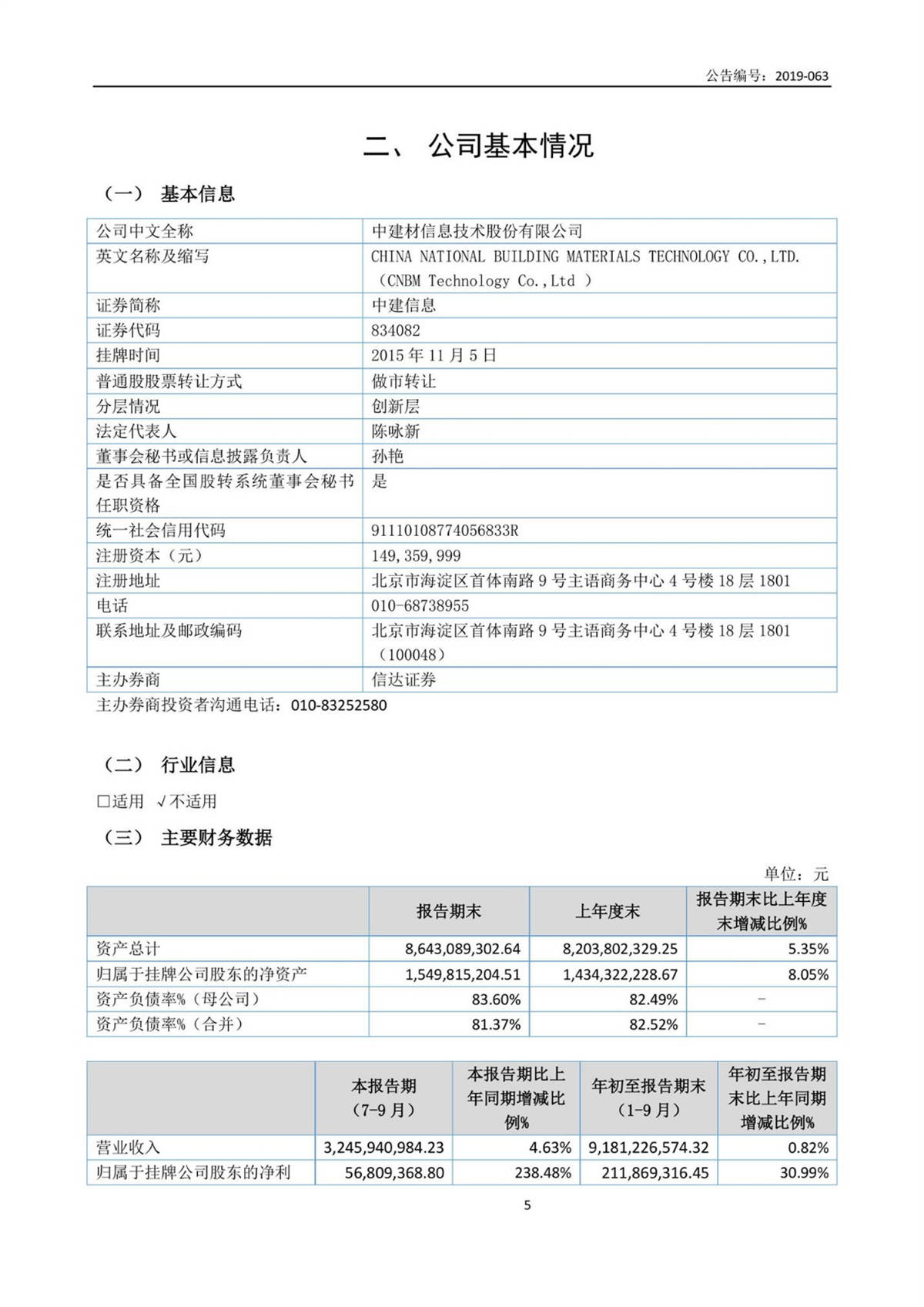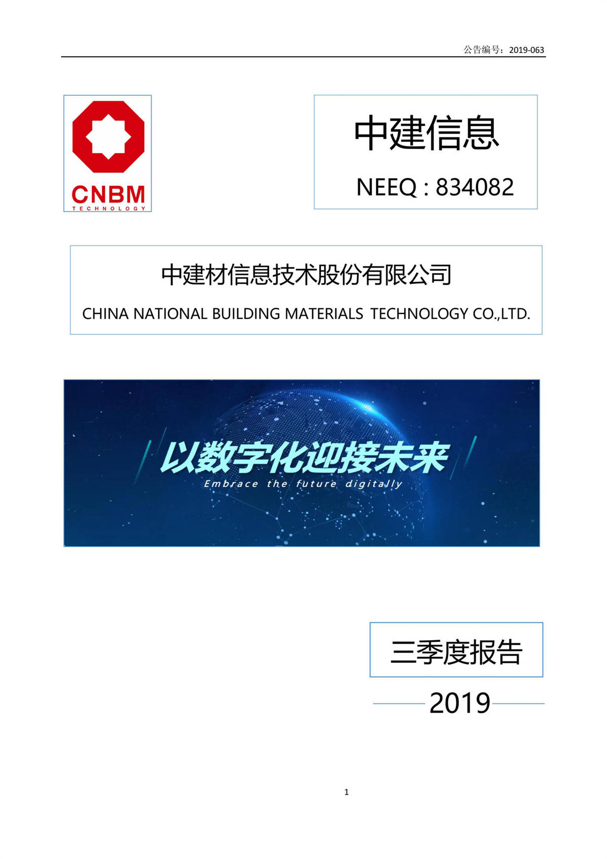 中建信息2019年第三季度报告