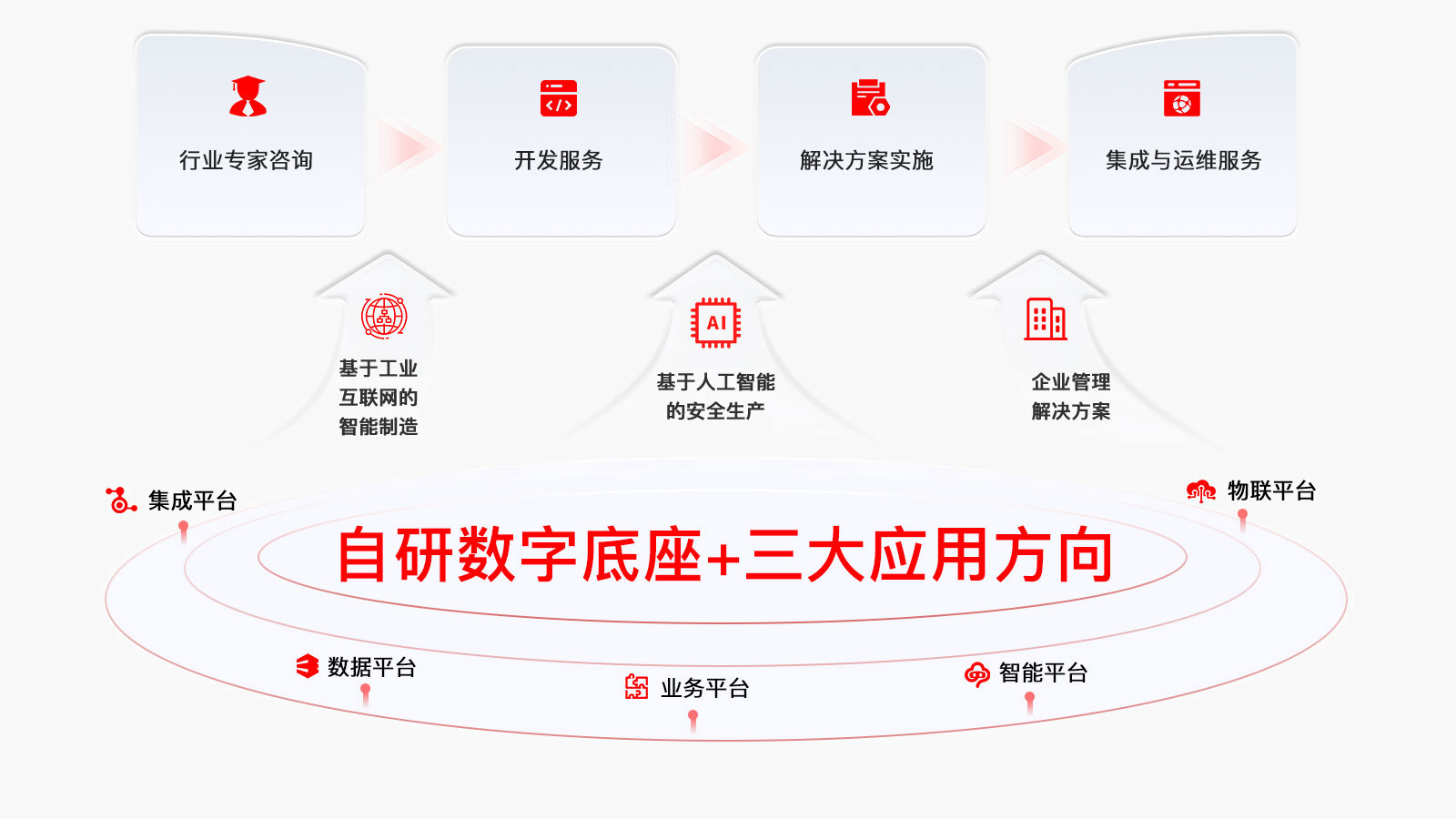 同时围绕自研数智产品及厂商生态服务业务延伸发展数智总集业务,为行业用户提供完整的数字化解决方案
